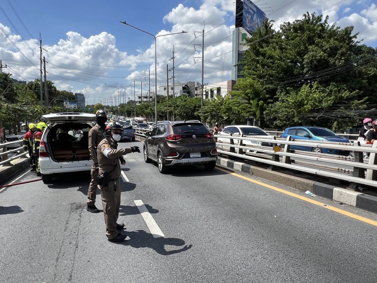 เหตุรถนั่งส่วนบุคคลเกิดเพลิงไหม้ภายในห้องเครื่องยนต์ จอดกีดขวางการจราจรช่องทางซ้าย
