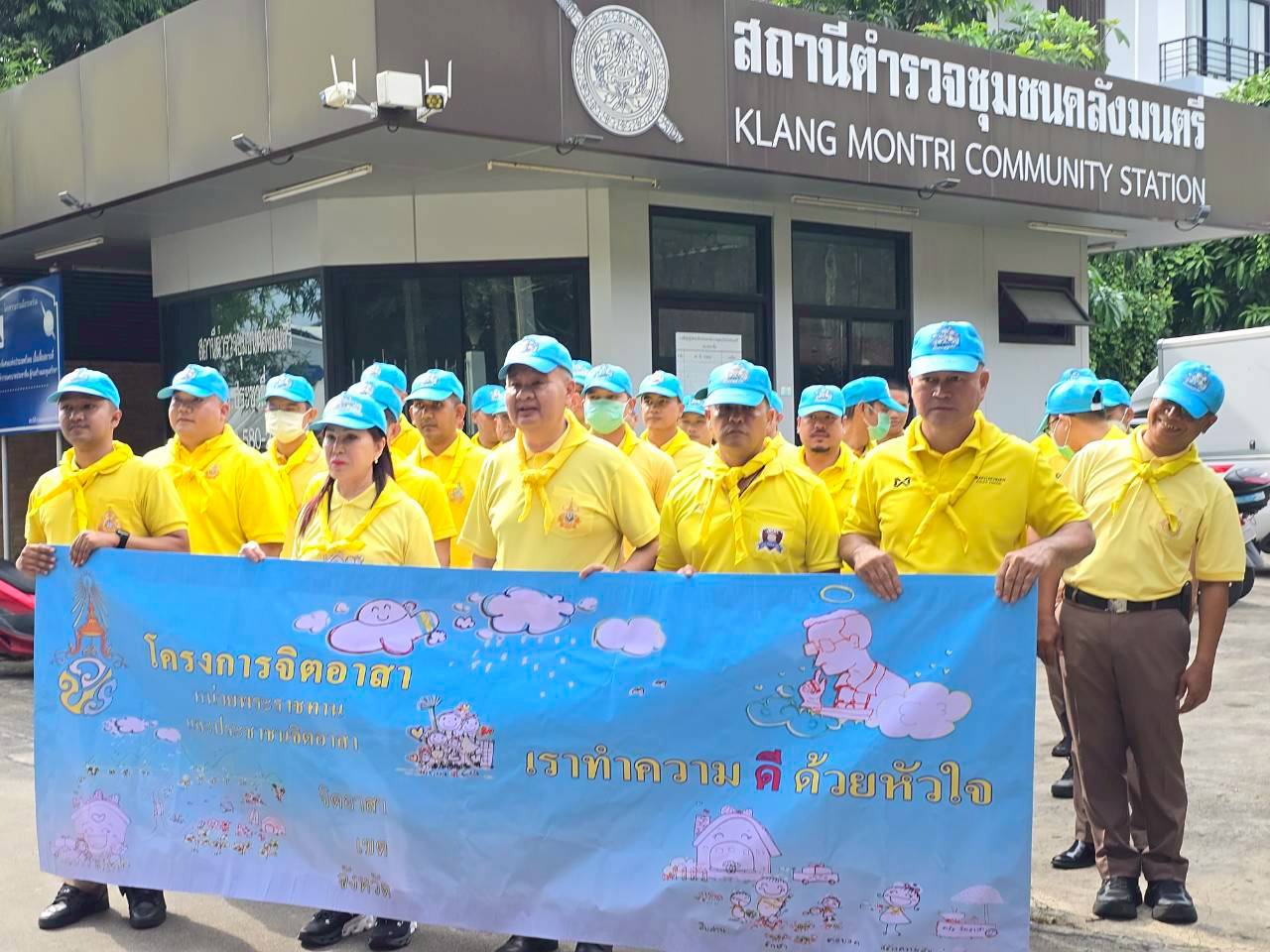คุณธนิสร ทินเจริญเศรษฐ ประธาน กต.ตร.สน.ประชาชื่น พร้อมด้วย พ.ต.อ.สัญญา อุบลวิรัตนา ผกก.สน.ประชาชื่น,พ.ต.ท.ชัยนาม นักไร่ รอง ผกก.ป.สน.ประชาชื่น รวมโครงการอาสาตำรวจ สน.ประชาชื่น มอบหมอบชุดอาสา ในการออกปฏิบัติหน้าที่ การมีส่วนร่วมของประชาชนในการป้องกันอาชญา่กรรม
